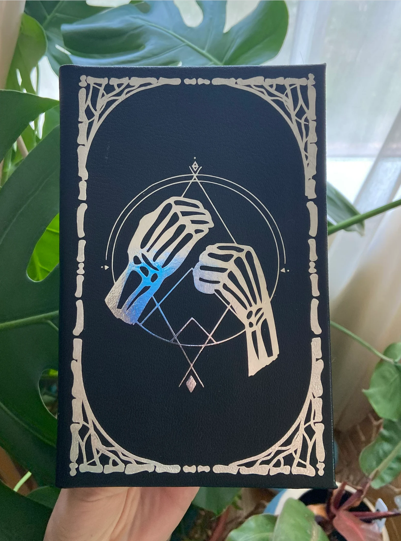 Handmade ornately designed leather bound edition of Gideon the Ninth from the Locked Tomb series by Tamsyn Muir.